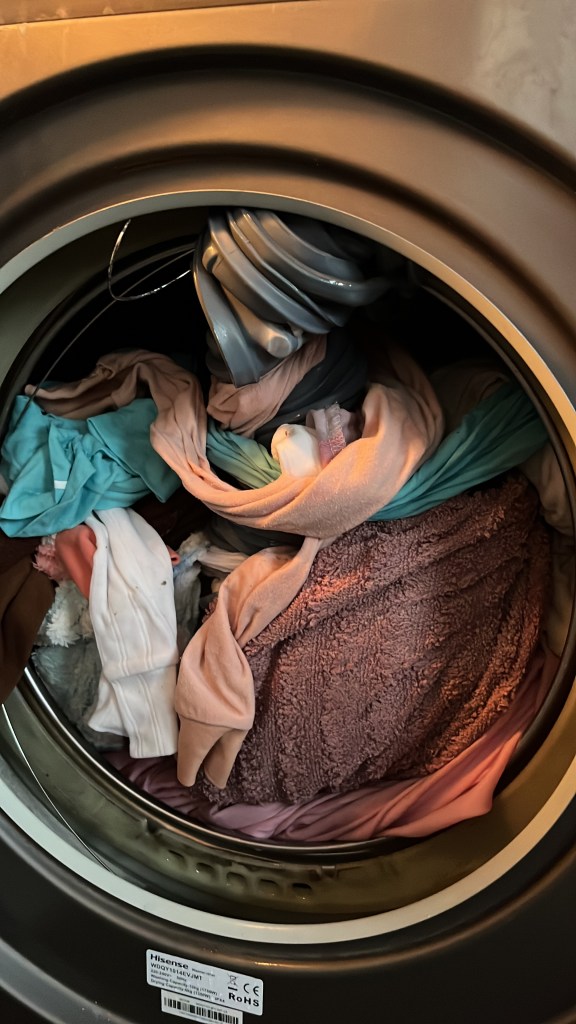 The washing machine broke. This is like when I thank God for X, then He allows X to be taken away. Some kind of test?