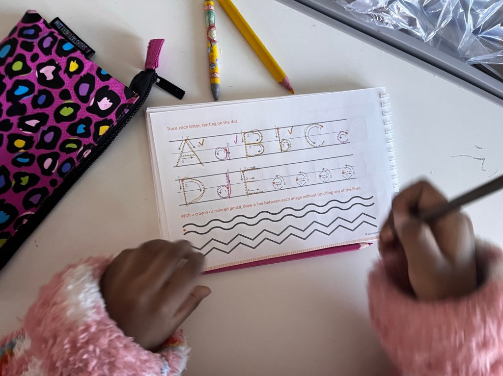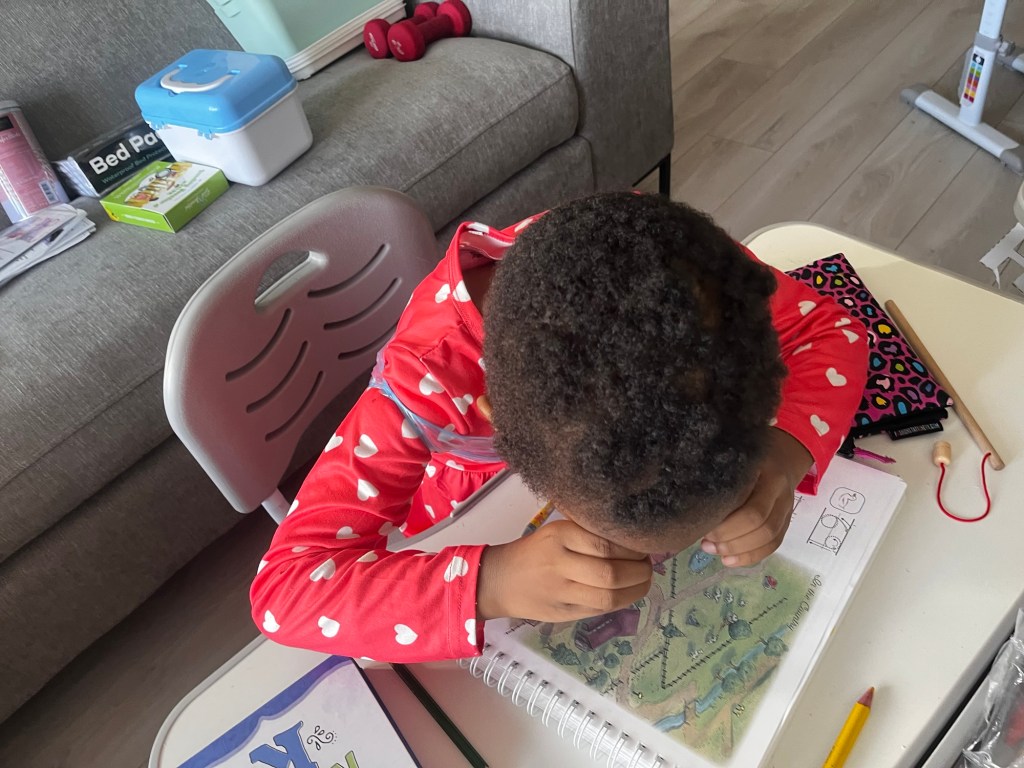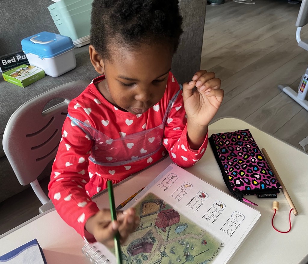 Another thing I’m enjoying is the joy my one five year old has for school activities and fine motor tests etc.