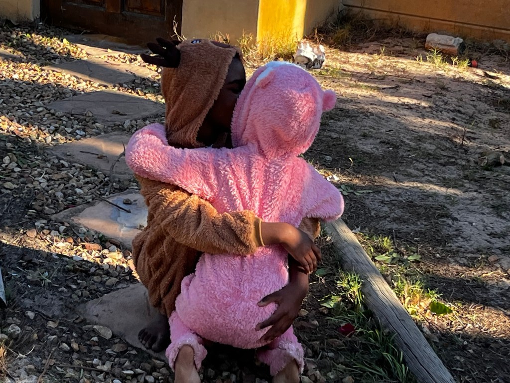 This is my ten year old girl in her elk onesie hugging her five year old sister in her rabbit onesie. Her heart is pure and sweet and she gives her heart to her tiny sister even when she’s being rude to people. (The joys of copying what her older teens have taught her to say.😏 Like “Shut up” to older people – not to me. She knows I know we don’t use those kinds of words so she keeps them for when she’s moody with strangers.)
