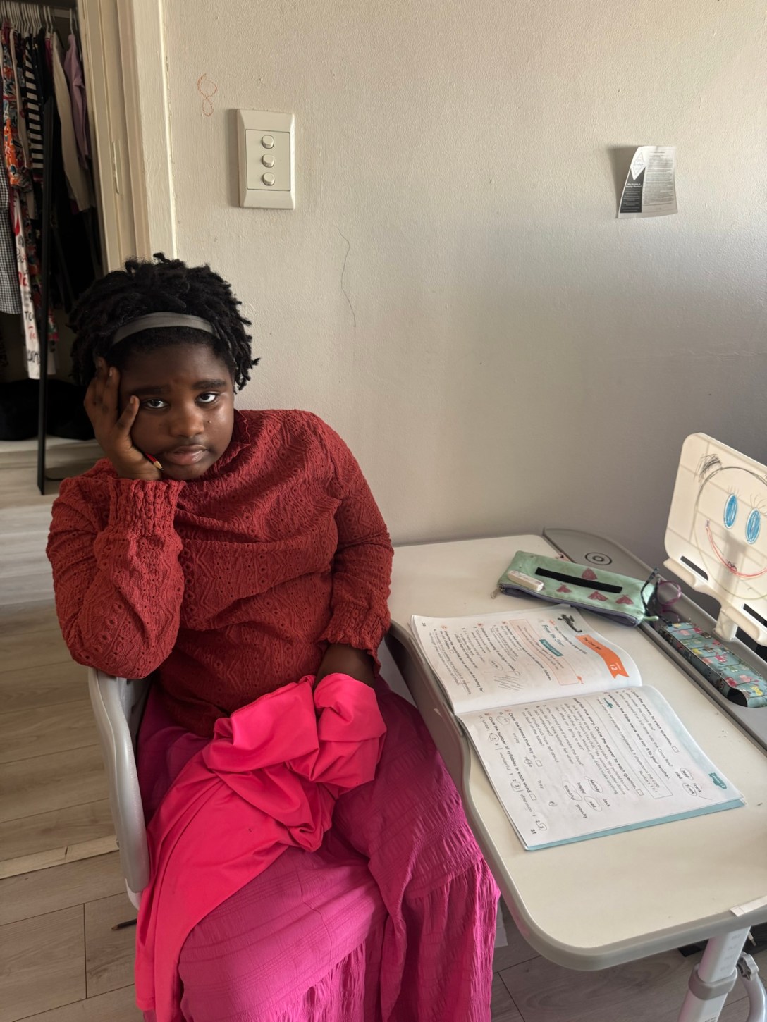 (Oh, she wasn’t hiding all day. I did ask her to reach one subject to her brother while her little sister was taken to OT. And yes, big brother has exams. Their holiday seasons are different so he’s still in uni mode.)