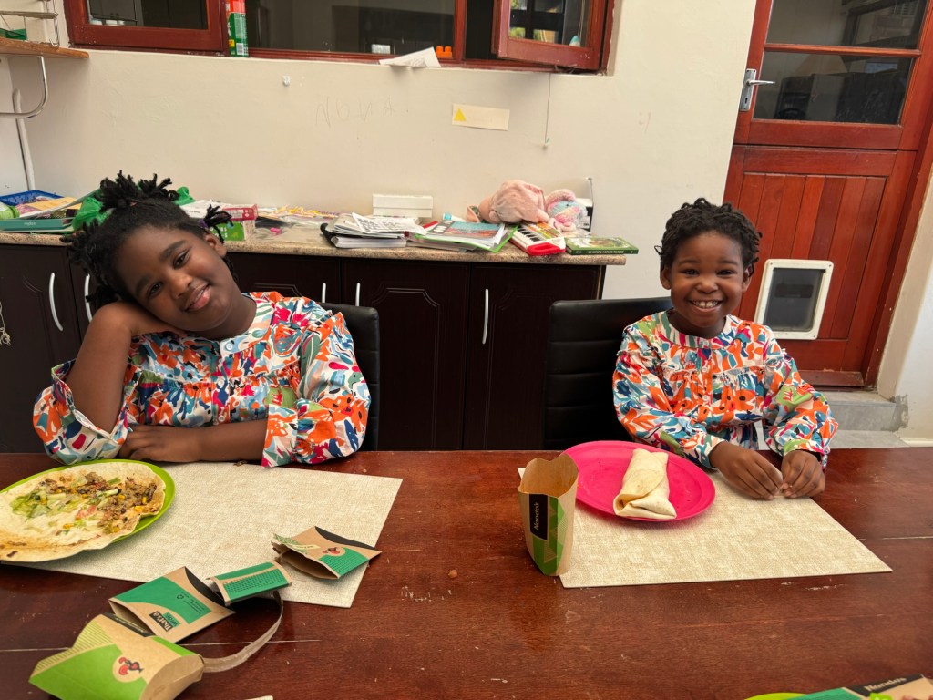 I told them they could have a Nandos veggie wrap instead because their sister doesn’t eat Nandos stuff and we’d have the pizza when her sister is back home.