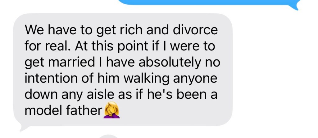 She may be young and mentally even younger, but her intuition is more advanced than even her 19 and 20 year old siblings. And unlike them, she sees not only slights aimed at her, but also what I go through. My first daughter texted me last week and said she’d rather walk down the aisle alone than be walked by a man who hasn’t been an actual father to her.