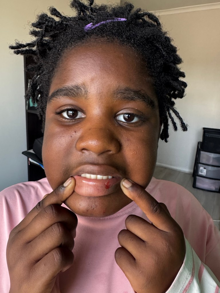 This is what she did to her poor sister’s lip. Oh my word this life is soooo hectic. Speaking of my 11 year old. Poor girl has gained massive amounts of weight. She was so hungry she was waking in the middle of the night and making noise looking for food. I took her off her antipsychotic in case it was the cause. But then today her emotions were .. psychotic. She was crying for no reason. She was very angry. The very anger that had made us put her on the medicine. Irritable. And by this evening, she’d told me she wanted to kill her father – twice.