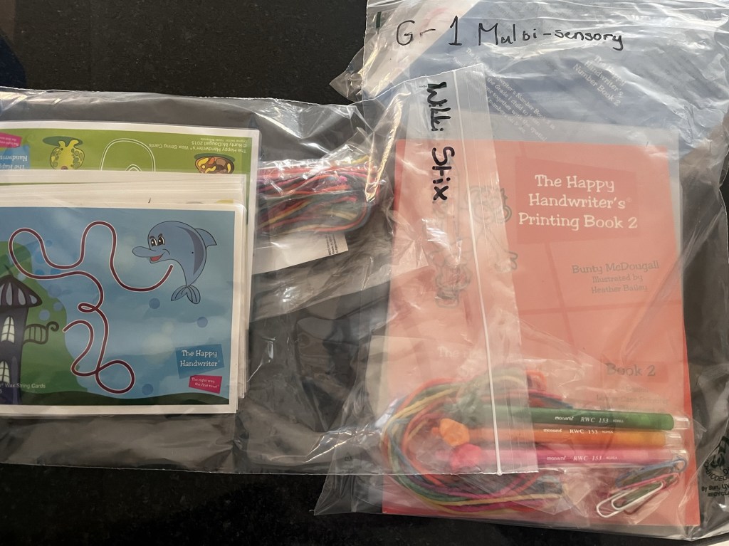 I have mixed two dysgraphia curricula together as one full one that the educational psychologist recommended is just too expensive. Not only did physical goods like these ‘unknown to me’ things that arrived yesterday, but a whole lot of ebooks too. It’s a whole new journey that I first have to study. And I’m not even coping with the current one.
