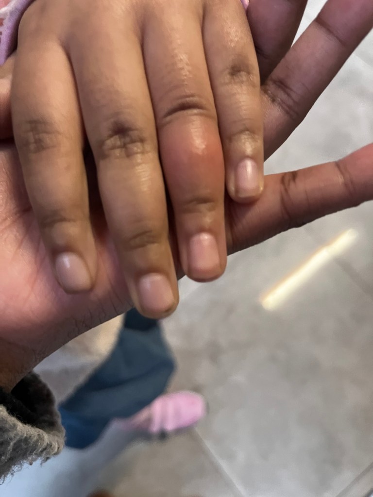 Winter in Cape Town (and elsewhere but I’m here!) is brutal. Pretoria is less humid and so my oldest two had had no problems with their fingers like they have had for YEARS here in our winter. Until yesterday. My poor daughter’s fingers swelled up way more than mine but thankfully she’s not feeling any pain yet.