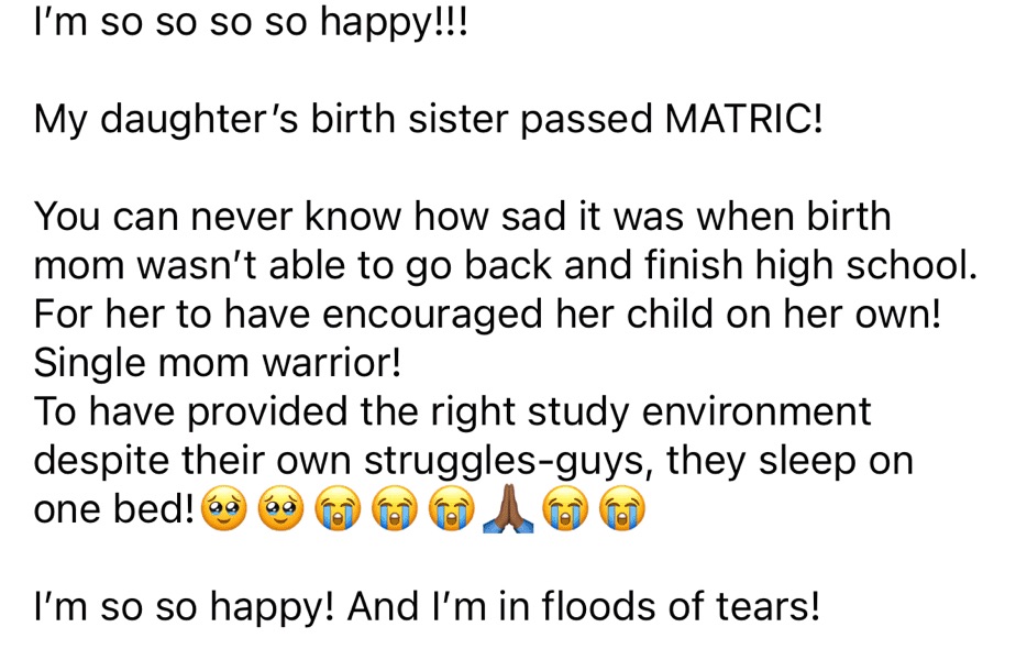 About ten or so years ago, a 16 year old girl (Also Black and Adventist), got in touch with me because she loved the love I have for my adopted children and she too had been adopted when she was three years old.